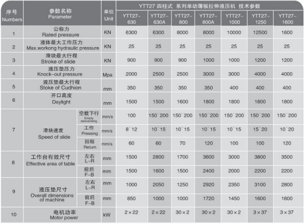 產(chǎn)品介紹:性能特點:計算機(jī)優(yōu)化結(jié)構(gòu)設(shè)計,為四柱式結(jié)構(gòu):四柱式結(jié)構(gòu)簡單、經(jīng)濟(jì)、實用;液壓控制系統(tǒng)采用插裝閥集成系統(tǒng),動作可靠、使用壽命長、液壓沖擊小、減少了連接管路與泄漏點,液壓集成系統(tǒng)采用獨立控制單元;采用按鈕集中控制,具有調(diào)整、半自動(半自動可分定程單次和定